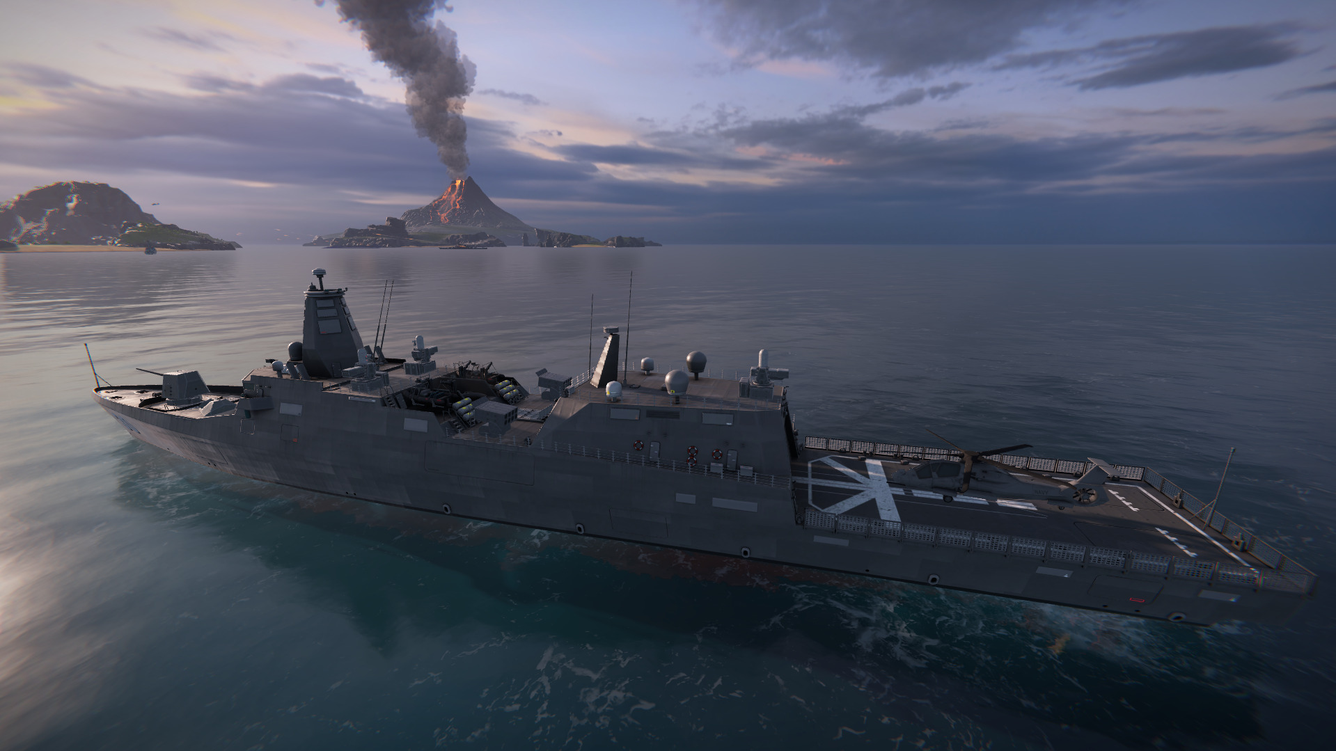 The variety of tactical options offered by this frigate is impressive, yet its full potential is best revealed when operating alongside a sturdier allied vessel that draws the enemy’s main attention. If an opponent carelessly exposes themselves from cover, the frigate can immediately punish them with a concentrated missile strike. Should a hostile submarine attempt to slip into your rear, anti-submarine rocket launchers and autocannons will quickly halt its attack. And if enemy aircraft decide to focus on you, the standard air defense suite can be supplemented by manual control of the two Bofors 57/70 Mark 3 (57 mm) guns — with precise aiming, they can dismantle an entire squadron with ease.