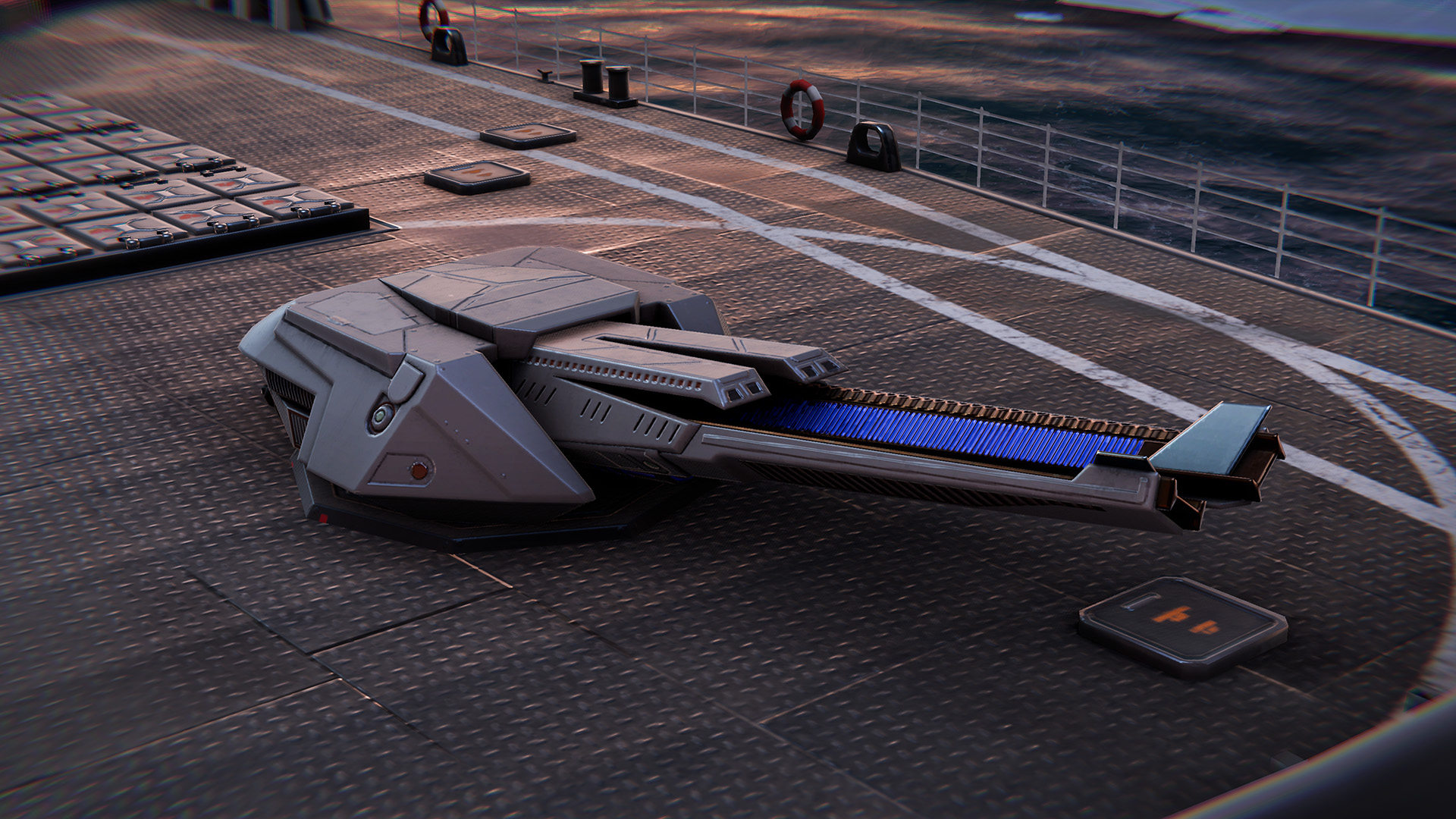 An American-developed railgun with a fast turret rotation and extremely high projectile velocity. It is designed to engage surface targets at long ranges, aided by exceptional accuracy. There is a short delay before firing to achieve the required magnetic acceleration.