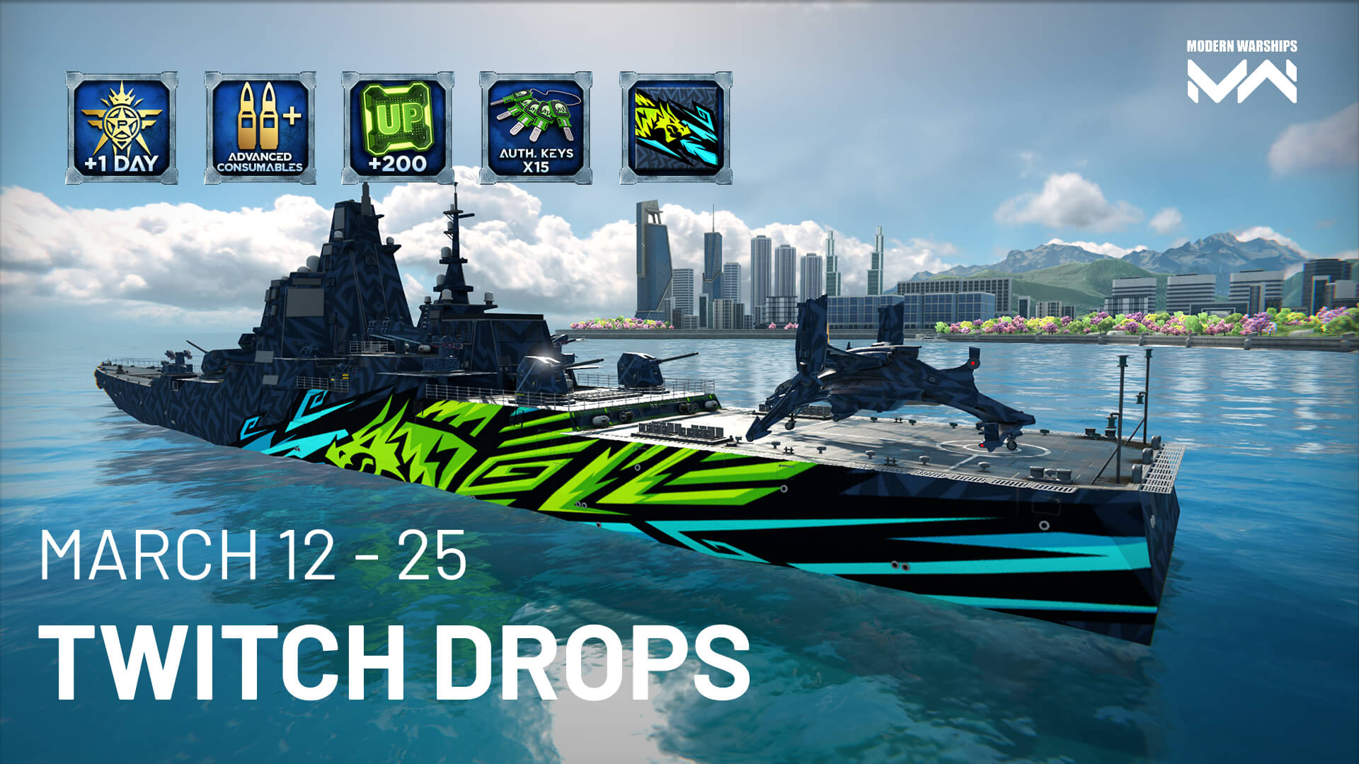 Commanders, from March 12 to 25, new Twitch Drops are live on Modern Warships streams!