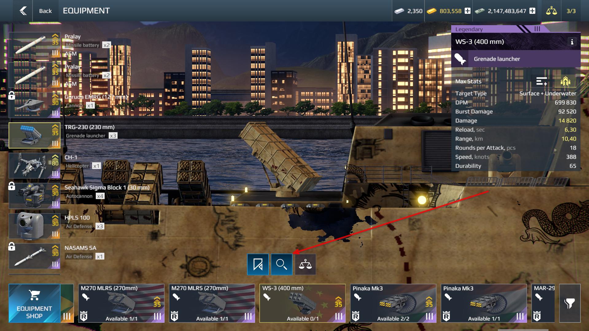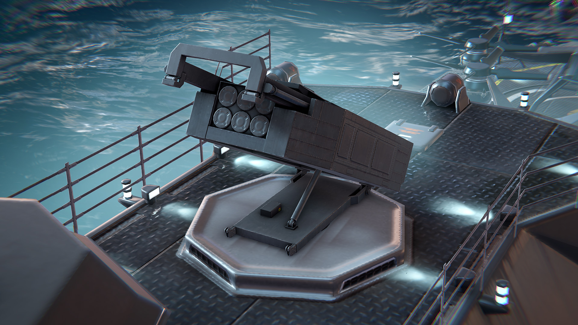 American long-range multiple rocket launcher. It can engage both enemy ships and submarines. It fires high-speed missiles at high trajectories over long distances and quickly locks on targets. It inflicts area damage and combines well with other missile weapons, increasing pressure on enemy air defenses.