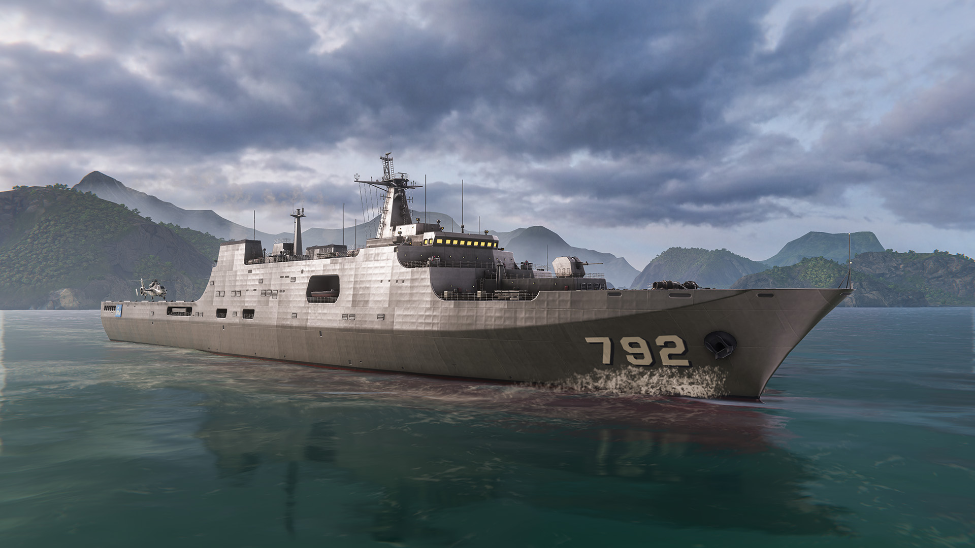 Thailand's assault landing ship based on the Chinese Type 071 project, designed to support other naval forces and counter all types of threats. This ship features good seaworthiness, a large deck with several helicopters, and a vast set of modern armaments. The ship has a really versatile set of weapons for all cases: missiles, cannons, grenade launchers, autocannons, and carries some unmanned vessels as well. Of course, there are reliable air defenses, including a unique RIM-162C ESSM, which offer full basic coverage of all aerial threats. It is a great example of an advanced assault landing ship, which can easily adjust to any specific target or combat scenario.