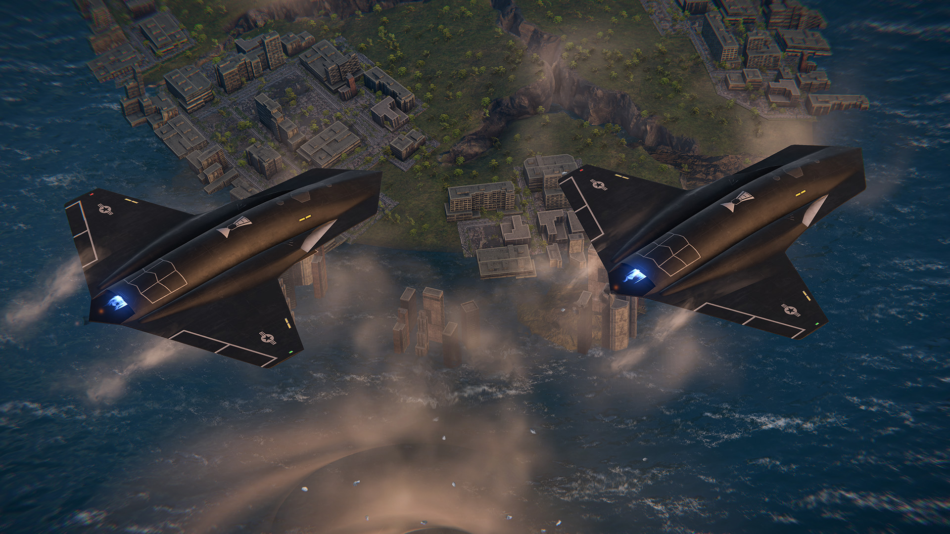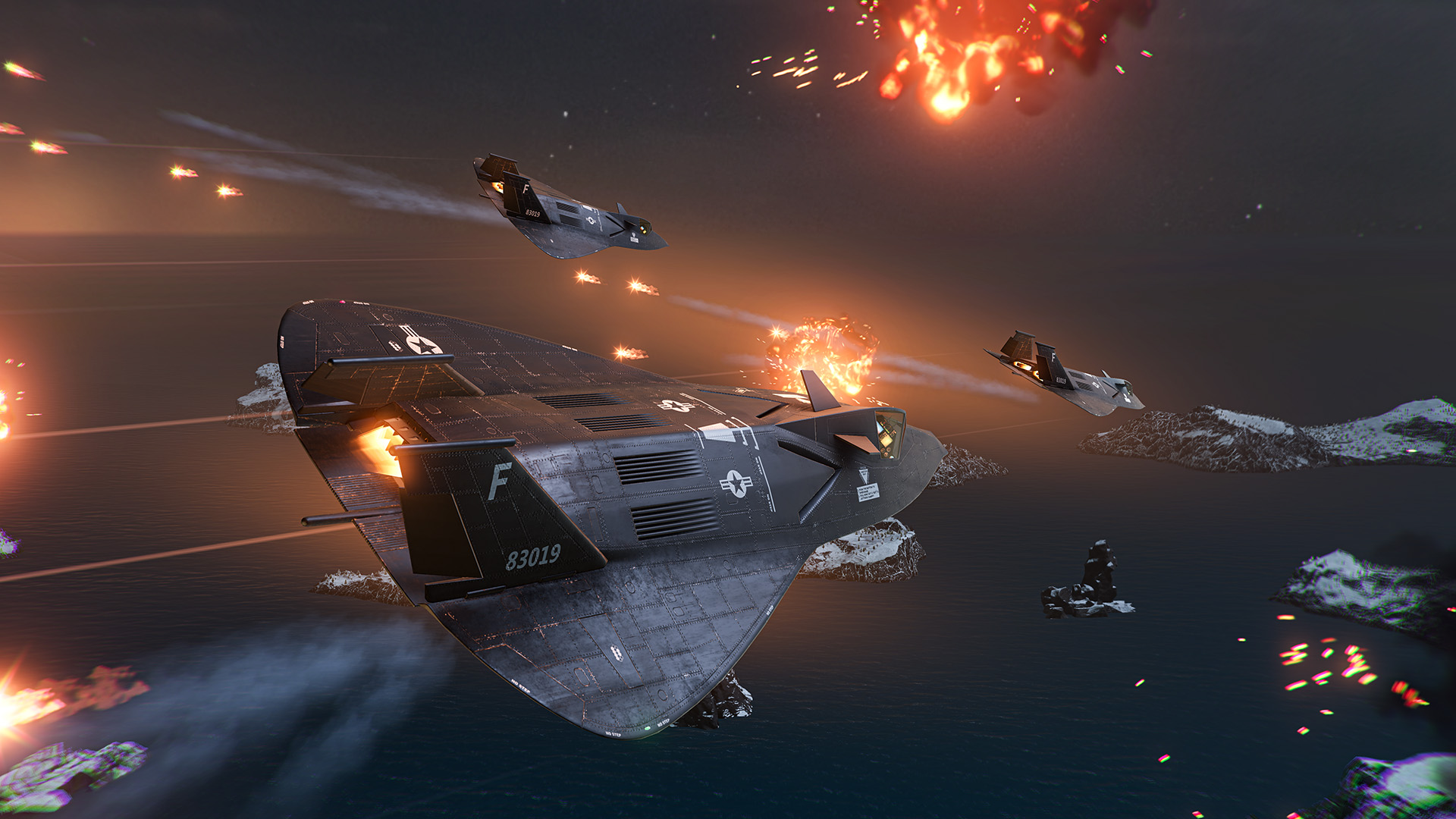 A prototype of a multirole strike fighter developed in secrecy by the United States. The project features clever use of stealth technologies and a reliable armament choice, allowing it to effectively engage surface and aerial targets. The aircraft's arsenal begins with an aircraft cannon project based on simplified particle acceleration technology called Railgun-19, suitable for engaging ships at close ranges. It is followed by HG-19, a compact hypersonic anti-ship missile with a nuclear warhead and an advanced targeting system. Finally, there are SPEAR-EWF, multipurpose missiles with an improved target acquisition system and rapid loading mechanism with manual fire control, allowing for effective fire pressure distribution towards enemies.